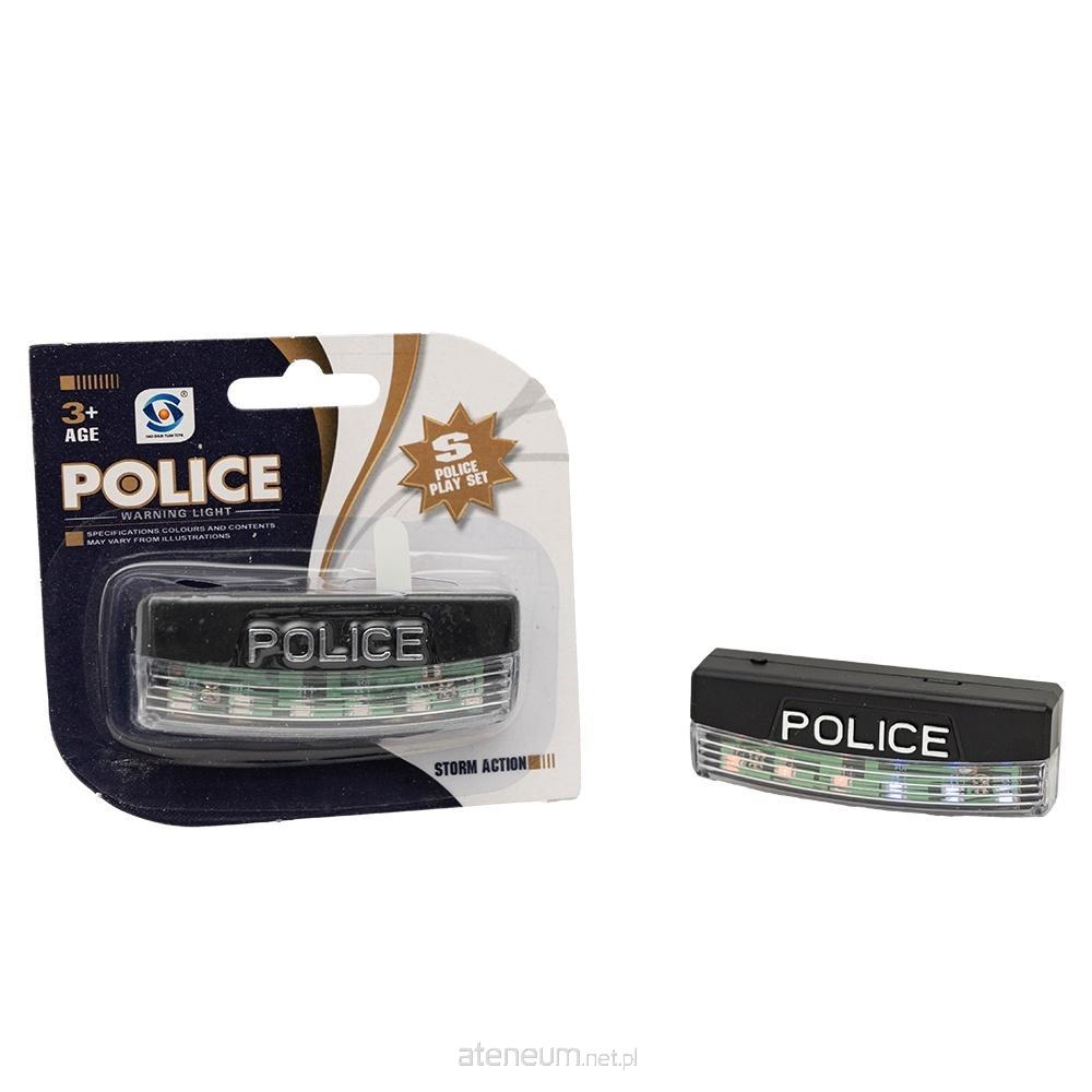 Światła policyjne niebiesko-czerwone 7 trybów świecenia - jeden stały oraz sześć migających. Wyposażone jest w poręczny klips umożliwiający łatwe mocowanie. Pakowanie display: 12 sztuk Wymiary opakowania: 11 x 2 x 10 cm Wymiary produktu: 8 x 1.5 x 3 cm Wiek: 3+ Zasilanie: 3 baterie AG13 (dołączone)