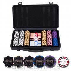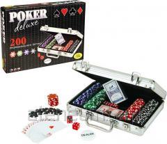 Zestaw do gry w pokera składający się z 200 żetonów o masie 11,5 g, dwóch talii kart, aluminiowanej walizki, kości i dealer butonów