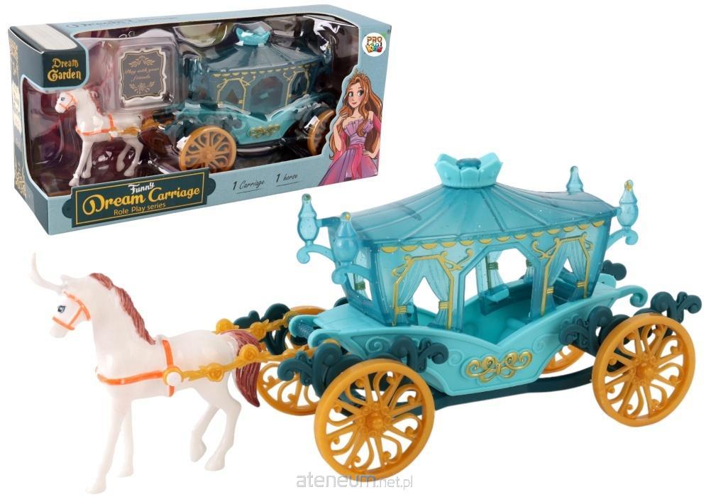 Karoca z koniem to zabawka dla dzieci, która umożliwia odgrywanie ról i tworzenie własnych, bajkowych opowieści. W zestawie znajduje się elegancka, błękitna karoca ozdobiona złotymi detalami oraz figurka białego konia. Produkt został zaprojektowany z myślą o dzieciach powyżej 3. roku życia, wspierając rozwój wyobraźni, kreatywności oraz zdolności narracyjnych.