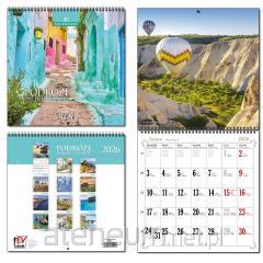 6 planszy, układ miesięczny,do każdego zdjęcia krótki opis, rozmiar 33x33cm, okładka lakierowana, kalendarz na spirali z zawieszką