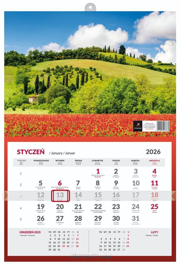 Kalendarz 2026 A4 ścienny na spirali impresje