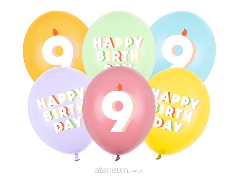 Balony Strong z nadrukiem ''9'', zestaw zawiera 3 kolorów balonów (Pastel Wild Rose, Pastel Light Blue i Pastel Honey) z dwustronnym nadrukiem, średnica ok. 30 cm.(1 op. / 50 szt.)