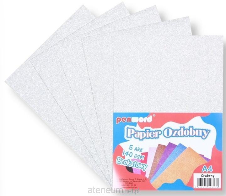 Papier ozdobny A4 brokatowy 140g srebrny 5ark