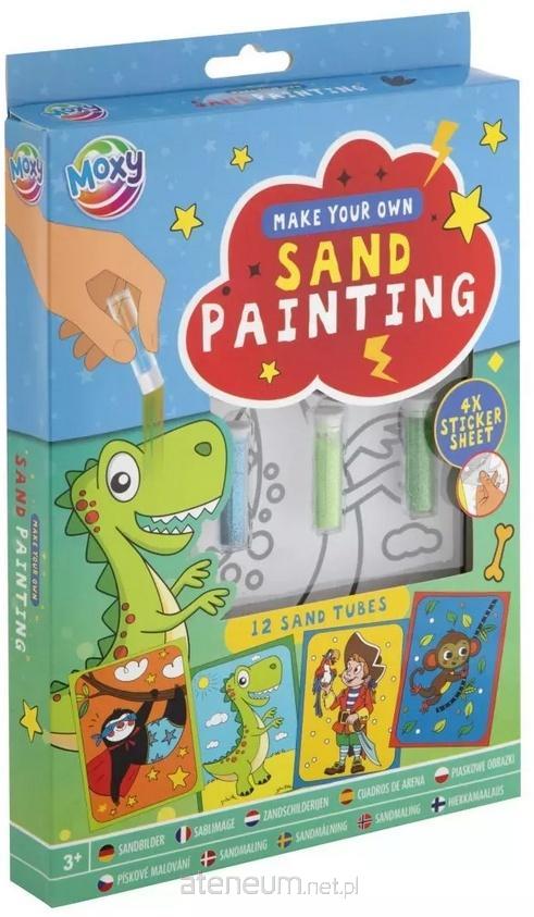 Nowa, kreatywna forma spędzania czasu dla dzieci-obrazki do pokrywania kolorowym piaskiem. Obrazki zawierają pola pokryte klejem, które po ich odsłonięciu można posypywać piaskiem i w ten sposób je kolorować. Każdy obrazek to kolejna okazja do wyboru najciekawszych połączeń kolorów. Zestaw zawiera: