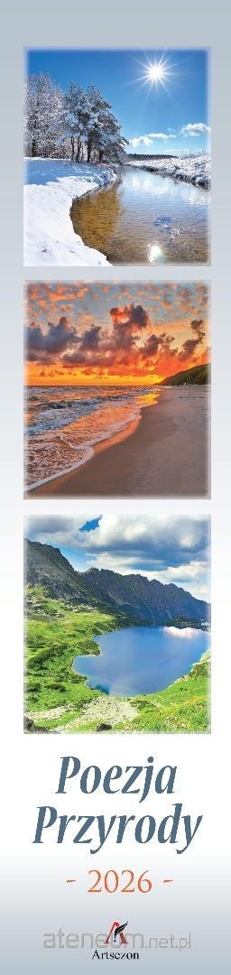 12 plansz, układ miesięczny, rozmiar 13,5 x 58,8cm, okładka lakierowana, kalendarz na spirali z zawieszką