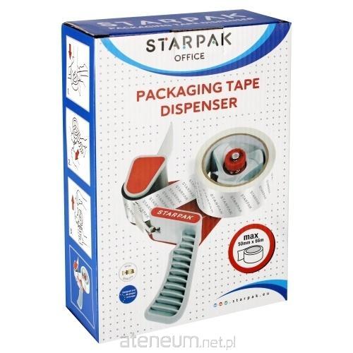 Pakowarka STARPAK (dyspenser) do taśmy o szerokości do 48 mm. Solidna konstrukcja z metalu i trwałych tworzyw. Pakowana w kartonik. Wymiary opakowania (szer. x wys.) [cm]16x23. Waga opakowania (kg.) 0,43kg. Produkt przeznaczony w wieku 3+.