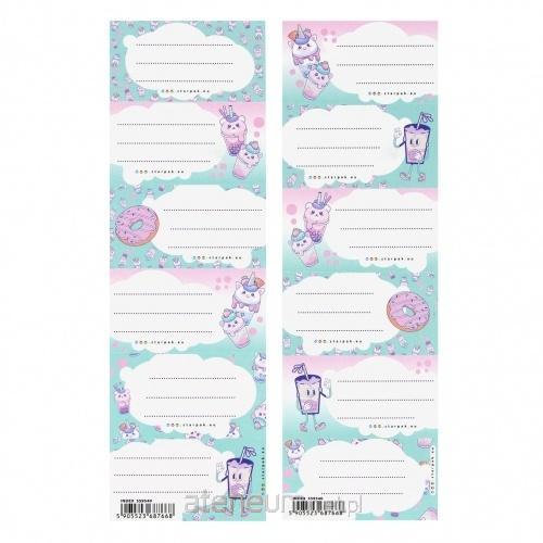 Naklejki na zeszyt Bubble Tea na listku znajduje się 6 naklejek, naklejki pozwalają na opisanie zeszytów szkolnych, dzięki czemu unikniemy pomyłek przy pakowaniu tornistra do szkoły. Zestaw kolorowych naklejek na zeszyty Bubble Tea z kolekcji STARPAK. Zapoznaj się również z innymi produktami STARPAK! Zawartość opakowania: 25 arkuszy po 6 szt. naklejek. Naklejki wykonane z papieru. Wymiary/waga: wymiary produktu (wys.x szer.)[cm]: 23x7,, waga produktu w opakowaniu [kg]: 0,07 kg. Nie odpowiednie dla dzieci poniżej 3 lat. Pakowane w folię.