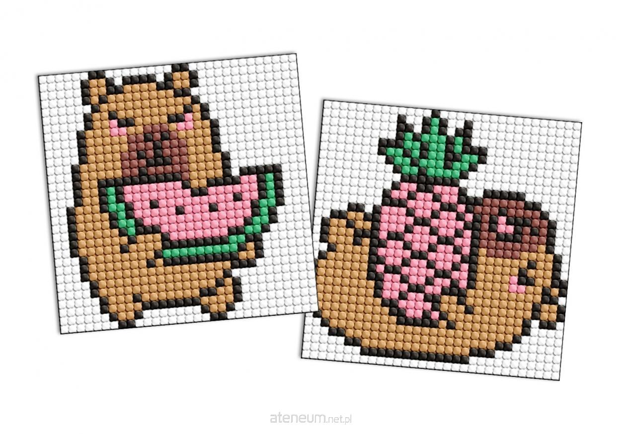 Diamentowa mozaika naklejka - Kapibara: ananas i arbuz 9x9cm
