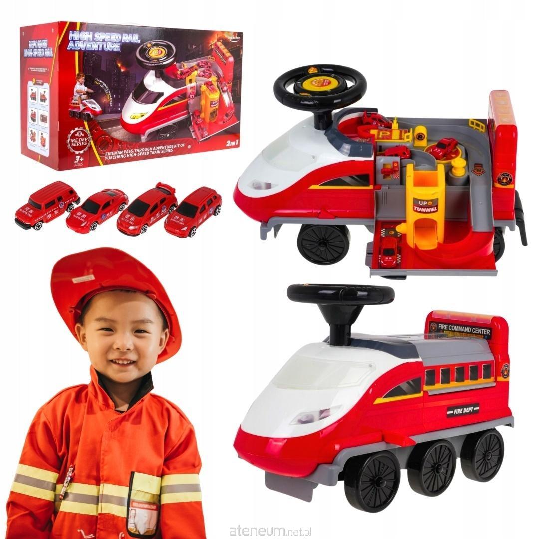 Jeździk to doskonały sposób na rozwijanie zdolności motorycznych i równowagi malucha. Wykonany z wytrzymałych materiałów, zapewnia bezpieczną zabawę zarówno w domu, jak i na zewnątrz podczas spacerów z rodzicami. Dodatkowym atutem są wysuwane podnóżki po obu bokach. Kierownica jest wyposażona w dwa guziki, dzięki którym kontrolować można efekty specjalne. Pojazd posiada 6 kół, na wzór pociągu, z czego dwa przednie są skrętne. Z tyłu jest chroniony panel z muzyką, opowiadaniami i odgłosami zwierząt (lektor nagrany w języku angielskim). Z przodu są świecące reflektory, a pod imitacją szybki - miejsce na drobiazgi. Kolejne miejsce na bagaż znajduje się pod parkingiem. Parking na samochodziki znajduje się pod siedzeniem jeździka i ma ruchome, ręcznie sterowane, elementy - winda, szlaban, podnośnik i kółko obrotowe. Do zestawu dołączone są małe autka (ok. 7 x 2,5 x 3cm), które idealnie pasują do parkingu.