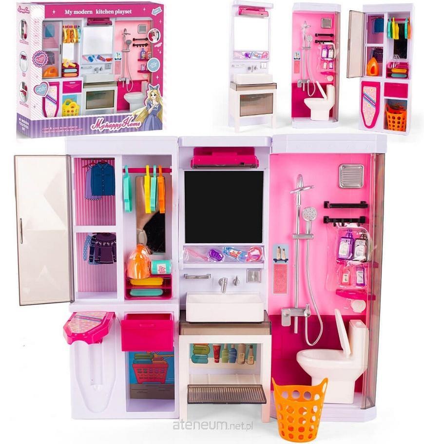 Stylowy i kolorowy zestaw łazienkowy do domku dla lalek to idealna propozycja dla każdej małej miłośniczki zabawy w dom. W komplecie znajdują się realistyczne meble i akcesoria: prysznic, toaleta, umywalka z lustrem, pralka, szafki oraz półki z kosmetykami. Całość wykonana została z trwałego plastiku i dopracowana w najmniejszych szczegółach. Dzięki bogatemu wyposażeniu dziecko może odgrywać codzienne scenki, rozwijając przy tym wyobraźnię, kreatywność i umiejętności społeczne. Zestaw pasuje do większości popularnych domków dla lalek i może być uzupełnieniem innych pomieszczeń. To świetny pomysł na prezent, który zapewni godziny wesołej i edukacyjnej zabawy.