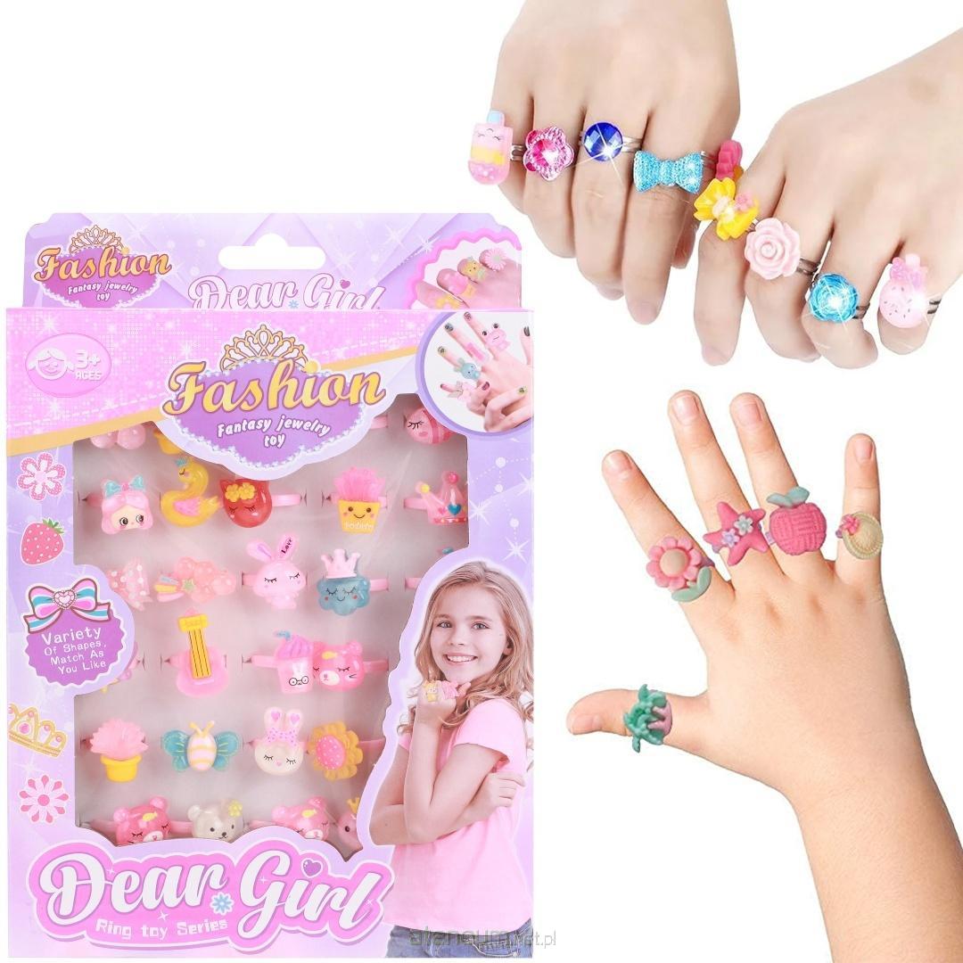 Zestaw 30 szt Pierścionków "Dear Girl" - Magiczny Świat Biżuterii dla Małych Dam! Przedstawiamy czarujący zestaw pierścionków "Dear Girl", który pozwoli każdej małej księżniczce wyrazić swój styl i stworzyć niezliczone, fantazyjne stylizacje! Ten wspaniały komplet to idealny prezent dla dziewczynek, które uwielbiają błyskotki i kreatywną zabawę. Cechy produktu: Bogactwo wzorów: Zestaw zawiera szeroką gamę uroczych pierścionków z różnorodnymi motywami - od słodkich owoców i zwierzątek, przez kwiatki i kokardki, aż po lśniące klejnoty i fantazyjne kształty. Każdy pierścionek jest unikatowy! Regulowany rozmiar: Pierścionki są zaprojektowane tak, aby pasowały na małe paluszki, z łatwą regulacją, co zapewnia komfort i swobodę noszenia dla dzieci w różnym wieku. Bezpieczne materiały: Wykonane z wysokiej jakości, bezpiecznych dla dzieci materiałów, trwałe i odporne na codzienne użytkowanie. Rozwój kreatywności: Zabawa pierścionkami stymuluje wyobraźnię, rozwija poczucie estetyki i pozwala na tworzenie własnych, unikalnych zestawów biżuterii. Idealne do odgrywania ról i kreatywnych zabaw. Idealny na prezent: Zestaw "Dear Girl" to fantastyczny upominek na urodziny, święta, Dzień Dziecka lub inną specjalną okazję. Z pewnością wywoła uśmiech na twarzy każdej dziewczynki! Wiek: Zalecany dla dzieci od 3 lat (na opakowaniu widnieje symbol 3+). Wielkość opakowania: 20x16x3 cm Pozwól swojej małej modnisi odkryć świat mody i biżuterii z naszym zestawem "Dear Girl"! To nie tylko zabawka, ale także inspiracja do wyrażania siebie i rozwijania artystycznych zdolności. Zamów już dziś i podaruj magiczną biżuterię swojej małej damie!