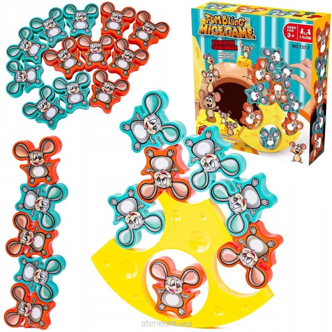 Gra zręcznościowa TUMBLING MICE GAME - Wieża Myszki i Ser! Przygotuj się na wesołą i pełną napięcia zabawę z grą zręcznościową TUMBLING MICE! Ta urocza gra to idealny sposób na rozwój koncentracji, precyzji i cierpliwości, jednocześnie zapewniając mnóstwo śmiechu dla całej rodziny. Jak grać? Celem gry jest ułożenie jak największej liczby uśmiechniętych myszek na chybotliwym kawałku sera, tak aby cała konstrukcja się nie przewróciła! Gracze na zmianę dokładają myszki, starając się zachować równowagę. Kto spowoduje, że myszki spadną, przegrywa rundę! Co sprawia, że TUMBLING MICE to doskonały wybór? Rozwija umiejętności: Gra doskonale ćwiczy koordynację ręka-oko, precyzję ruchów, logiczne myślenie i zdolność przewidywania. Wciągająca zabawa dla każdego: Proste zasady sprawiają, że gra jest odpowiednia dla graczy w różnym wieku, od najmłodszych po dorosłych. Idealna na rodzinne wieczory, spotkania z przyjaciółmi czy jako prezent. Uroczy design: Kolorowe, uśmiechnięte myszki w dwóch odcieniach (niebieskim i pomarańczowym) oraz wesoły kawałek sera zachęcają do zabawy i dodają grze uroku. Wysoka jakość wykonania: Elementy gry są solidnie wykonane z bezpiecznych materiałów, co gwarantuje długie godziny beztroskiej zabawy. Dla 2 graczy: Gra przeznaczona jest dla dwóch graczy, co sprzyja rywalizacji i interakcji. Zawartość zestawu: Duży kawałek sera stanowiący chwiejną podstawę Liczne figurki myszek w dwóch kolorach Wielkość opakowania: 20x21x6 cm Idealna dla dzieci w wieku 3+