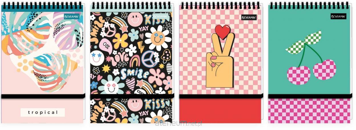 Fascynujący design - Okładka każdego notatnika ozdobiona jest modną grafiką co nadaje mu unikalnego charakteru. Miękka matowa oprawa . Czarna spirala dodaje notatnikom eleganckiego wykończenia.