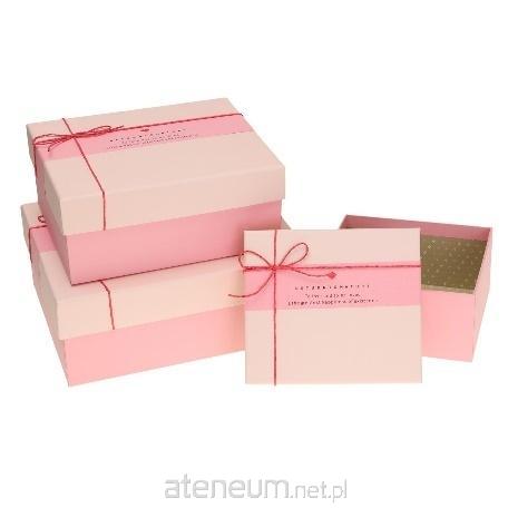 Pudełko prostokątne z kokardą 3szt różowy ROZETTE