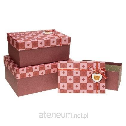 Pudełko prostokątne z kokardą 3szt czerwony ROZETTE