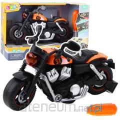 Model motocykla z mechanizmem pull-back, posiada elementy metalowe. Zapakowany w kartonowe pudełko. Zabawka przeznaczona dla dzieci od lat 3. Zabawka działa na baterie typu AG13. Baterie znajdują się w zabawce.