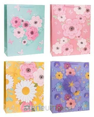 Torba prezentowa 32x26x10cm Love Kwiaty brokat MIX