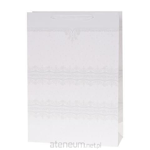 Torebka Lux 55x40x20cm brokat biała ROZETTE