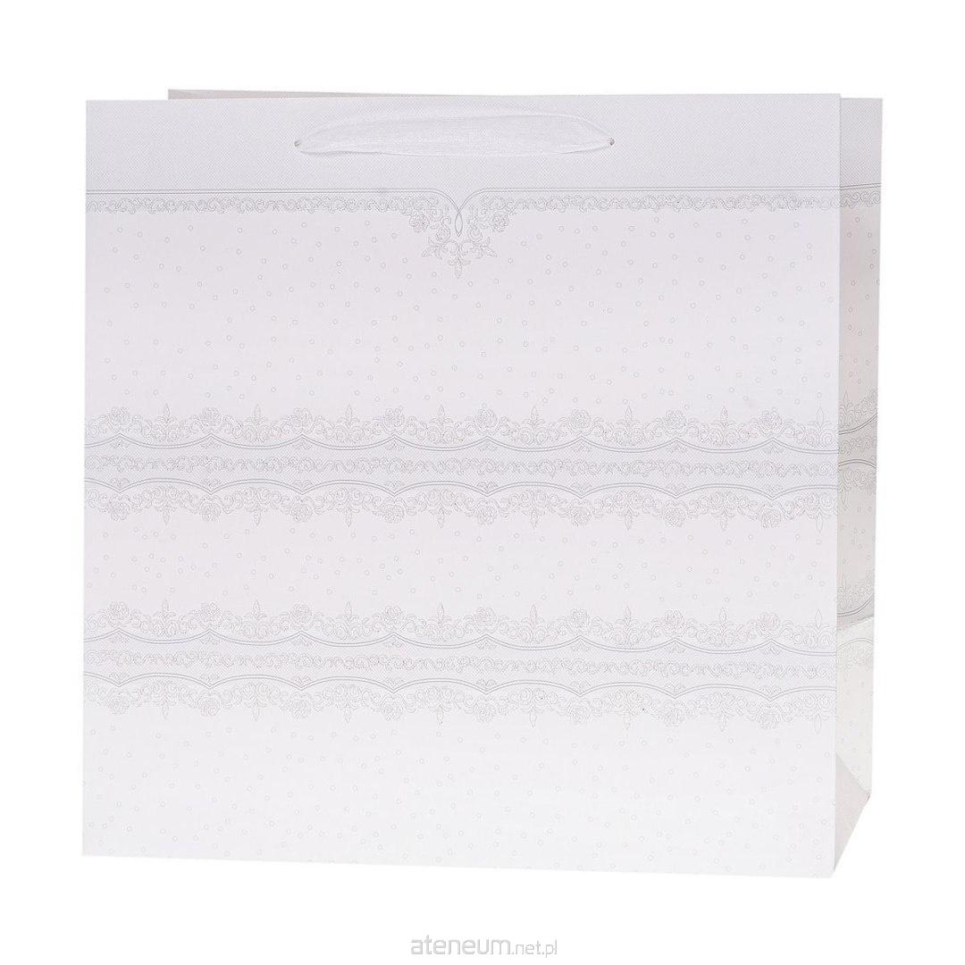 Torebka Lux brokat kwadrat biała 37x37x20cm ROZETTE