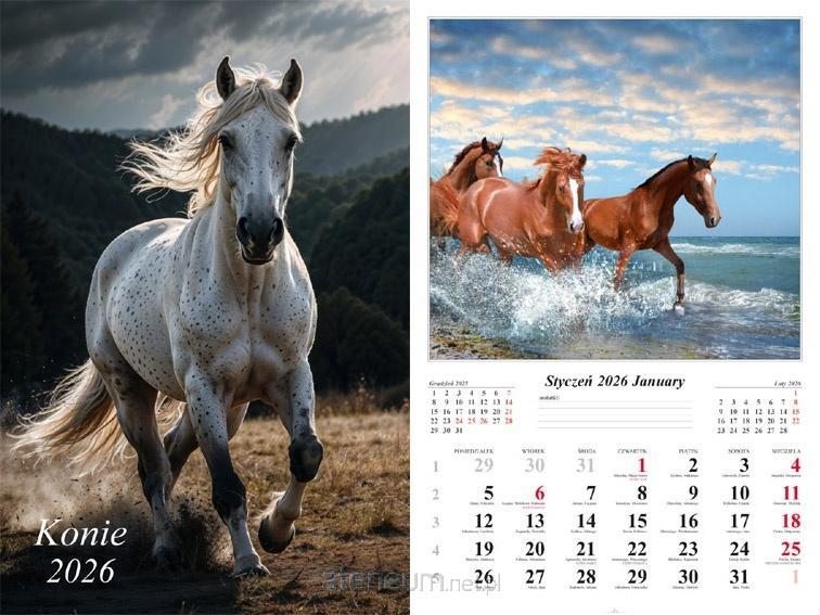 Kalendarz 2026 ścienny Konie