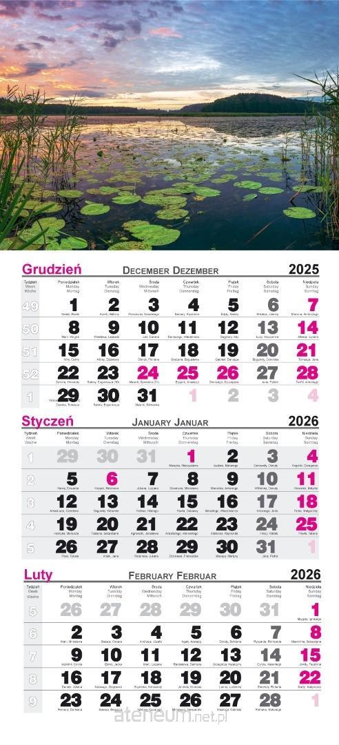 Kalendarz 2026 ścienny trójdzielny Górskie jezioro