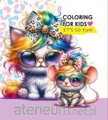 Kolorowanka dla dzieci. Zawiera 18 obrazków do pokolorowania. Dodatkowo w środku jest 60 naklejek. Wyprodukowano na Ukrainie.