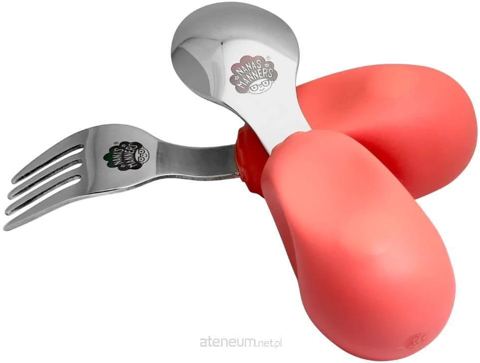 Podaruj swojemu dziecku radość z samodzielnego jedzenia dzięki zestawowi łyżki i widelca Nana's Manners w kolorze różowym.