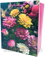 Torebka ozdobna matowa 26x32x12cm Kwiaty