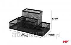 Organizer na biurko w kształcie chmurki, zawiera miejsce na spinacze, długopisy i ołówki oraz inne przybory biurowe.