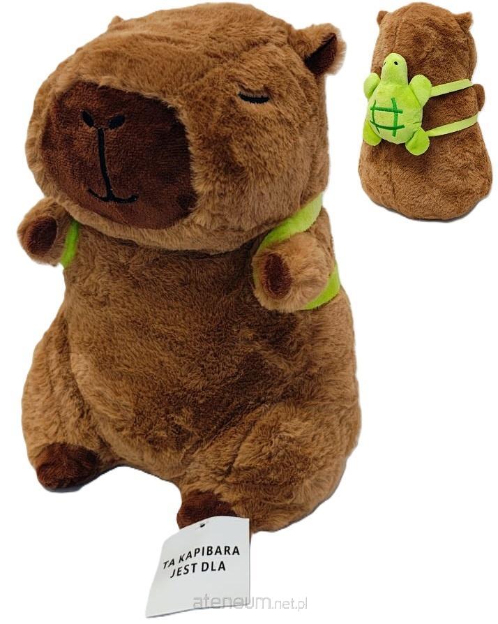 PLUSZOWA KAPIBARA 30 CM Z PLECAKIEM W KSZTAŁCIE ŻÓŁWIA Poznaj uroczą pluszową kapibarę z zielonym plecaczkiem - idealną towarzyszkę do przytulania i zabawy! Ten mięciutki pluszak o ciepłym, brązowym odcieniu z pewnością skradnie serca zarówno dzieci, jak i dorosłych. Kapibara ma urocze, sympatyczne oczka, które nadają jej wyjątkowo przyjazny wygląd. Na jej plecach znajduje się niewielki plecak w kolorach zieleni, który przypomina żółwia - to nie tylko uroczy detal, ale też funkcjonalny dodatek, który nadaje zabawce charakteru i uroku. To świetny pomysł na prezent dla każdego miłośnika kapibar - niezależnie od wieku! Maskotka ma około 30 cm wysokości i została wykonana z miękkich, wysokiej jakości materiałów. Jej przyjemna w dotyku faktura sprawia, że chce się ją przytulać bez końca. Kapibara z plecaczkiem szybko stanie się wiernym towarzyszem codziennych przygód, gotowym do dzielenia się ciepłem, uśmiechem i radością.