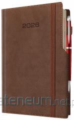 W środku miejsce na notatki, roczny planer, oznaczone wybrane święta międzynarodowe, mini kalendarium, międzynarodowe numery telefonów, strefy czasowe,