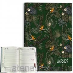 format 71 x 81 mm układ tydzień na stronie objętość kalendarium 128 stron w tym wkładka informacyjna 48 stron papier offset 70g/m2 druk 2 kolory (granat / czerwony) oprawa broszurowa szyta okładka folia PVC