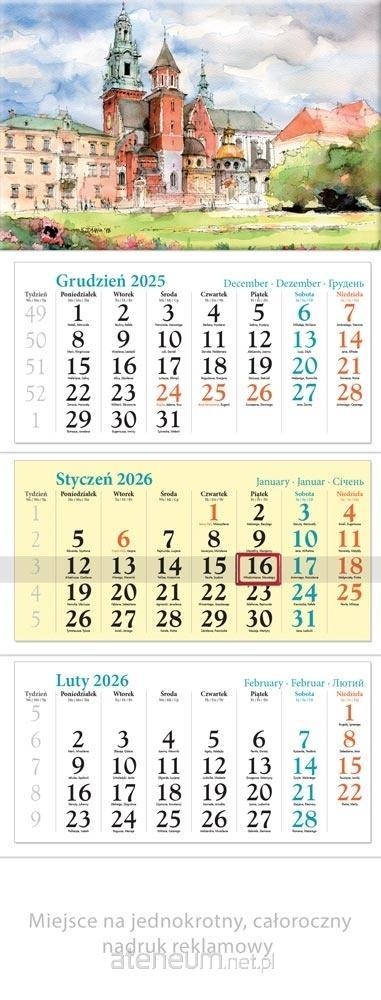 Kalendarz 2026 ścienny trójdzielny Kraków