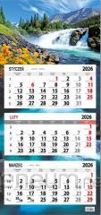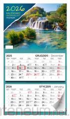 Kalendarz 2026 trójdzielny płaska główka Wodospad