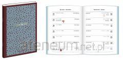 W środku miejsce na notatki, roczny planer, oznaczone wybrane święta międzynarodowe, mini kalendarium, międzynarodowe numery telefonów, strefy czasowe,