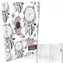 W środku miejsce na notatki, roczny planer, oznaczone wybrane święta międzynarodowe, mini kalendarium, międzynarodowe numery telefonów, strefy czasowe,