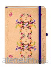 W środku miejsce na notatki, roczny planer, oznaczone wybrane święta międzynarodowe, mini kalendarium, międzynarodowe numery telefonów, strefy czasowe,