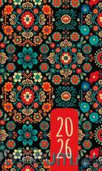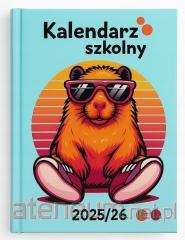 W środku miejsce na notatki, roczny planer, oznaczone wybrane święta międzynarodowe, mini kalendarium, międzynarodowe numery telefonów, strefy czasowe,