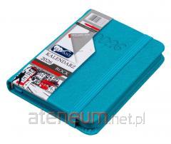 W środku miejsce na notatki, roczny planer, oznaczone wybrane święta międzynarodowe, mini kalendarium, międzynarodowe numery telefonów, strefy czasowe, skorowidz na adresy i telefony,