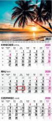KALENDARZ TRÓJDZIELNY 2026 WYMIAR CAŁKOWITY KALENDARZA: 32 x 85,5cm GŁÓWKA KALENDARZA: Zdjęcie uszlachetniane folią błysk, z efektem wypukłości. KALENDARIUM: wym. 28,5 x 14 cm, trójjęzyczne (PL, GB, D), z numeracją tygodni i imieninami jest przytrzymywane przez kartonowe wypustki, które zapobiegają jego odstawaniu od plecków kalendarza. WYKOŃCZENIE: kartonowa zawieszka, pasek z czerwonym przesuwanym okienkiem, miejsce na notatki. WYMIAR ZDJĘCIA 32 x 22 cm ZDJĘCIE Z EFEKTEM WYPUKŁOŚCI: uszlachetnione folią błysk.