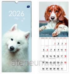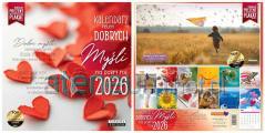 KALENDARZ TRÓJDZIELNY 2026 WYMIAR CAŁKOWITY KALENDARZA: 32 x 85,5cm GŁÓWKA KALENDARZA: Zdjęcie uszlachetniane folią błysk, z efektem wypukłości. KALENDARIUM: wym. 28,5 x 14 cm, trójjęzyczne (PL, GB, D), z numeracją tygodni i imieninami jest przytrzymywane przez kartonowe wypustki, które zapobiegają jego odstawaniu od plecków kalendarza. WYKOŃCZENIE: kartonowa zawieszka, pasek z czerwonym przesuwanym okienkiem, miejsce na notatki. WYMIAR ZDJĘCIA 32 x 22 cm ZDJĘCIE Z EFEKTEM WYPUKŁOŚCI: uszlachetnione folią błysk.