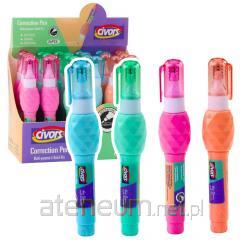 Korektor w taśmie, szerokość 5 mm, długość 6 metrów. Ergonomiczny kształt obudowy dopasowany do dłoni. Wysokiej jakości taśma korekcyjna odporna na zerwanie z idealnie przylegającą do powierzchni papieru warstwą korygującą, po której można pisać bezpośrednio po zastosowaniu. Do użytku na większości rodzajów papieru. Przezroczysta obudowa pozwala śledzić pozostałą ilość taśmy korygującej. Estetycznie zapakowany w twardy blister.