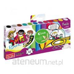 Plastelina 12 kolorów. Przeznaczona do zabawy, nauki modelowania, tworzenia prac plastycznych, odciskania, wykrawania foremkami. Elastyczna, łatwa do modelowania, intensywne kolory. Nie brudzi rąk i nie przywiera do podłoża. Wyprodukowane w Polsce.