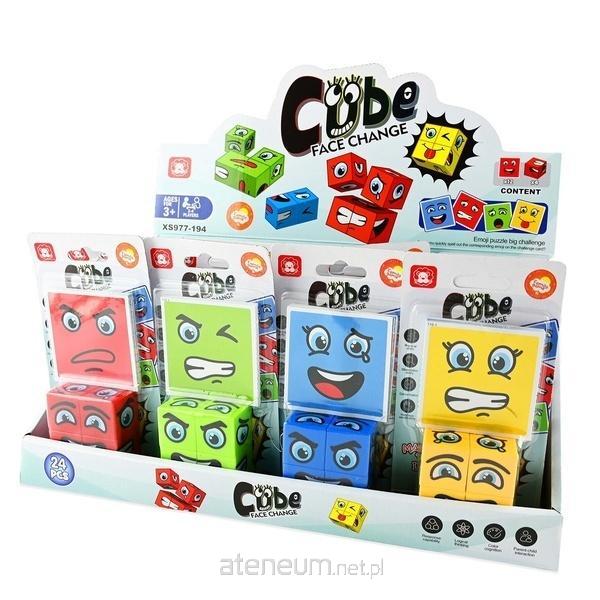 W zestawie znajduje się 12 kart oraz 4 klocki z narysowanymi elemenetami twarzy
