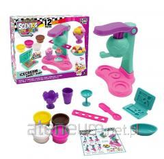 - w zestawie: pachnący piasek puszysty w czterech kolorach, 6 plastikowych foremek, 1 zabawkowa łyżka i 1 mata;
