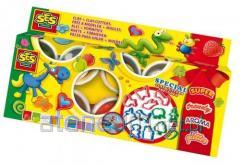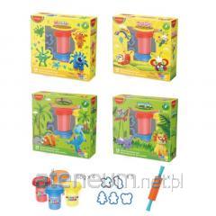 - w zestawie: pachnący piasek kinetyczny w pięciu kolorach, 6 plastikowych foremek, 1 zabawkowa łyżka, 1 zabawkowy wałek i 1 mata;