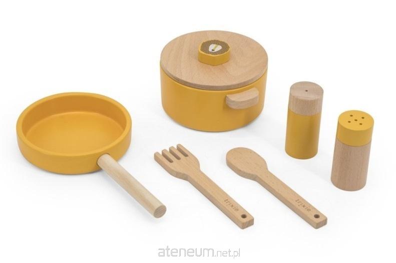 Zaczynamy gotowanie! Z tym wesołym zestawem, który zawiera jednego z naszych zwierzęcych przyjaciół, Twoje dziecko będzie miało godziny zabawy przy przygotowywaniu najbardziej szalonych potraw. Zestaw składa się z garnka, patelni, solniczki i pieprzniczki, łyżki i widelca. Wystarczy dodać tajemniczy składnik - wyobraźnię - i gotowe! Zestaw do gotowania wykonany jest w 100% z drewna certyfikowanego FSC®. Wszystkie farby użyte w produkcie są wodne, bezpieczne dla dzieci i nietoksyczne. Skład: FSC® MDF - FSC® drewno bukowe Wiek: 2+