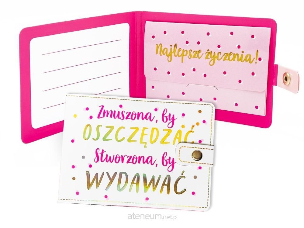 Portfelik POR-007 "Zmuszona, by oszczędzać. Stworzona, by wydawać" Portfeliki z życzeniami to alternatywa dla tradycyjnych kartek, są wyjątkowym sposobem na podarowanie bliskiej osobie banknotu. Portfeliki są kolorowe i uszlachetnione metalizowaną folią hot-stamp, oraz są wyposażone w zamknięcie na zatrzask, co umożliwia ich wielokrotne otwieranie i zamykanie - jak w prawdziwym portfelu. Portfeliki zawierają niebanalne teksty oraz życzenia w środku. Specyfikacja: wymiary: 11 x 8 cm (po złożeniu) wnętrze: życzenia w środku waga: 13 g okazja: ogólne życzenia