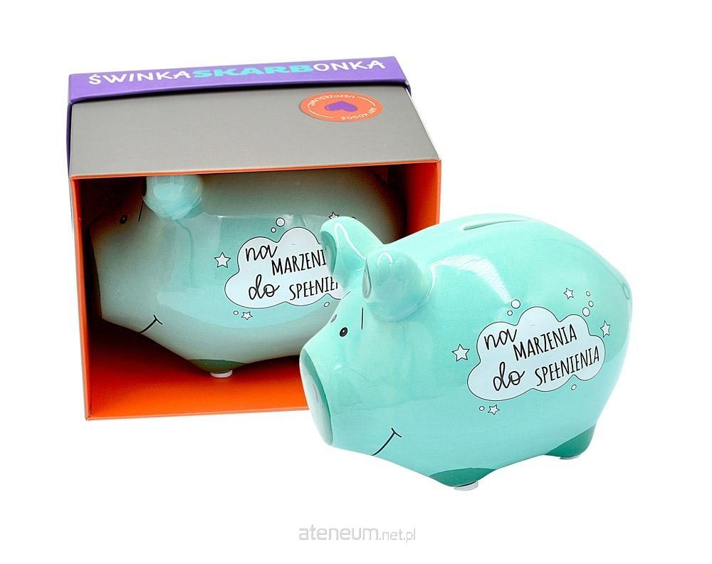 Skarbonka mała świnka SKM-016 "Na marzenia do spełnienia" Ceramiczna skarbonka w kształcie świnki to świetny pomysł na prezent. Świnki są kolorowe i ozdobione zabawnymi tekstami, świetnie się sprawdzą jako dekoracja pokoju. Cechy szczególne: Typ produktu: skarbonka na prezent, Materiał: ceramika Wys. świnki: 8,5 cm. Waga: 214 g Wymiary pudełka: 12,5 x 10 x 10 cm (dł x szer x wys) Opakowanie: kolorowy kartonik Okazja: ogólne życzenia, urodziny