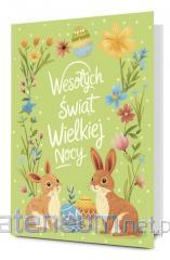 Kartka zawiera życzenia i kolorowy środek.